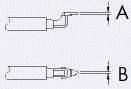koko A = 0,7mm ja koko B = 0,5mm
