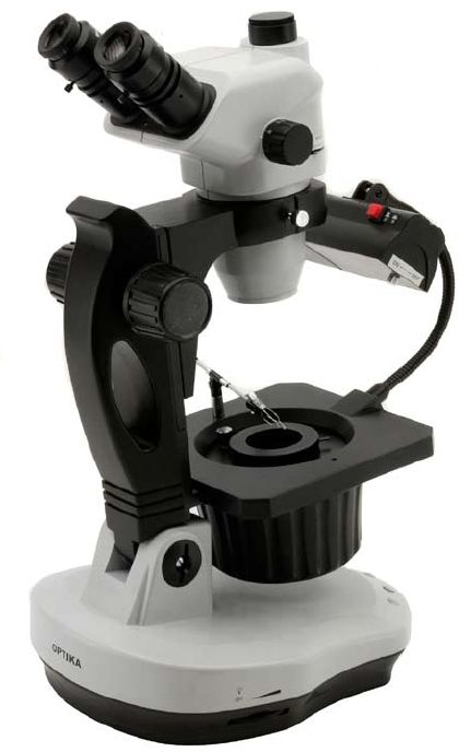Jalokivimikroskooppi kallistuvalla jalustalla.